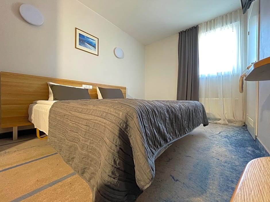 Bright room with a flat-screen TV with satellite channels and a sofa bed.